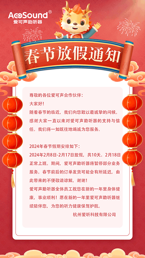 2024爱可声助听器春节放假通知